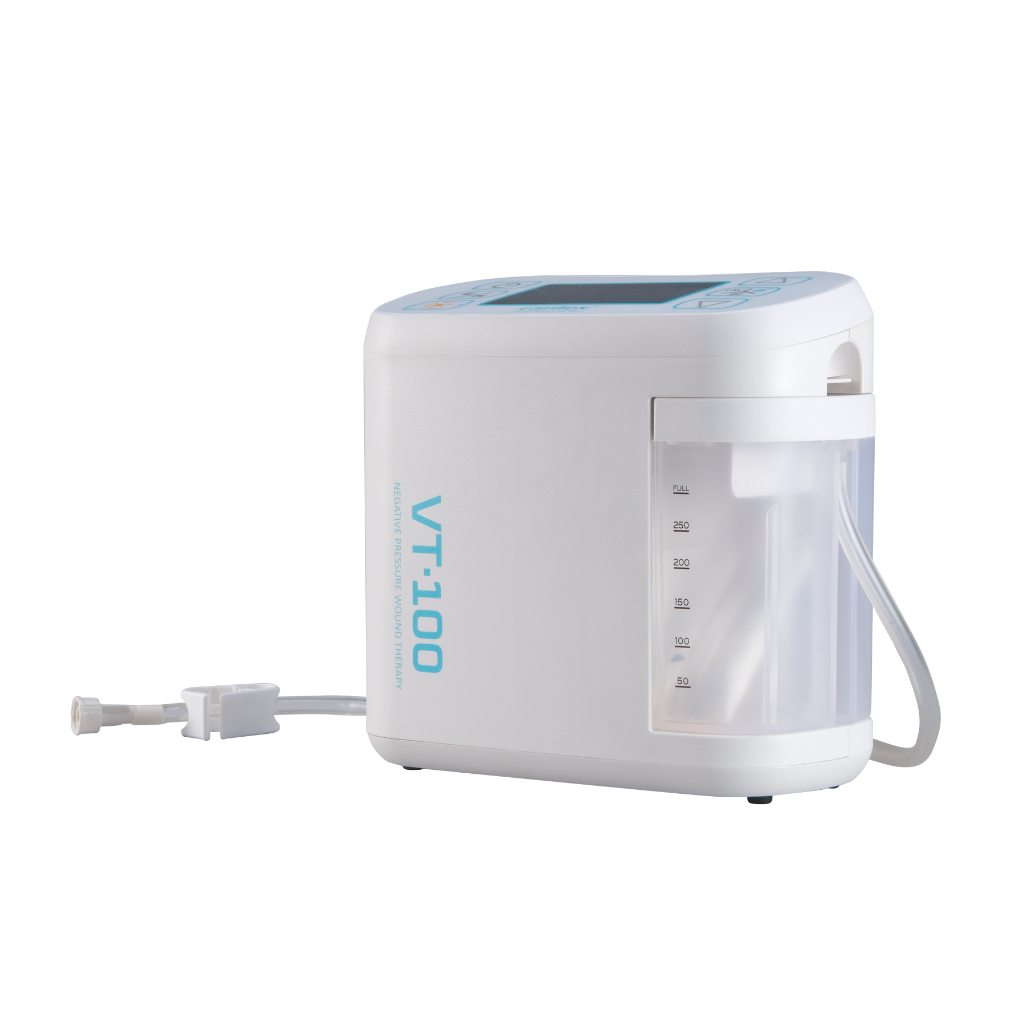 VT • 100 is indicated for use on patients with traumatic wounds, dehisced wounds, partial thickness burns, chronic wounds such as pressure ulcers, diabetic foot ulcers, venous leg ulcers, acute wounds, flaps, and grafts.