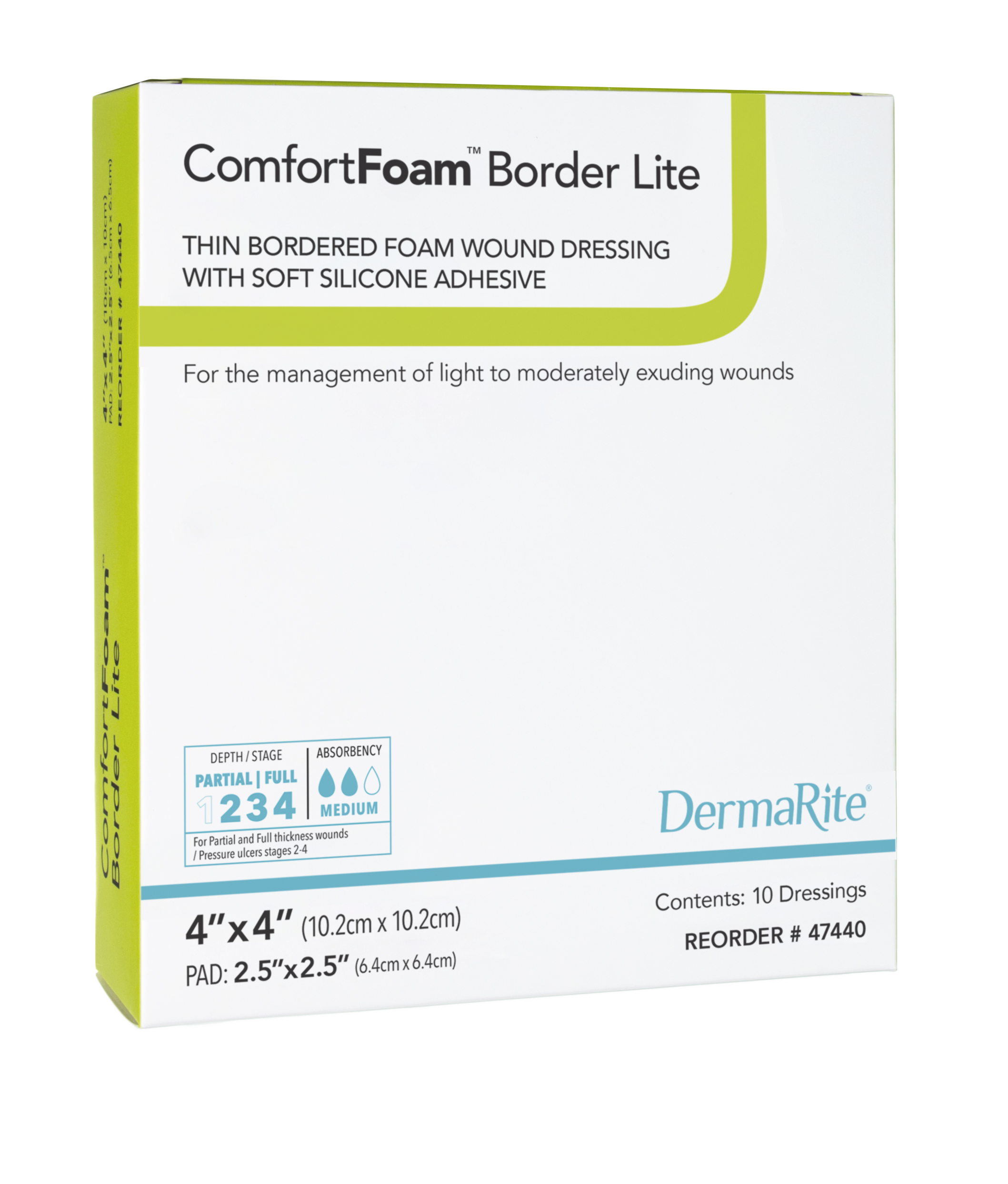 ComfortFoam™ Border Lite is a moderately absorbent, self-adherent silicone foam island dressing with border.