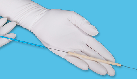 6. Ensure the stopper disc is removed from the end of the wire. Then, using aseptic technique, navigate the tip of the guidewire to the desired terminal end of wound.